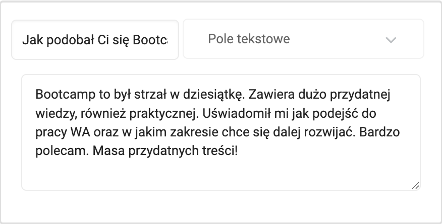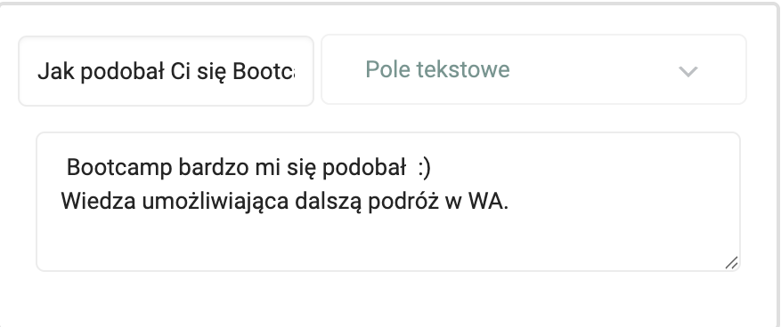 Bootcamp bardzo mi się podobał :) Wiedza umożliwiająca dalszą podróż w WA. Bardzo polecam osobom, które chciałyby zacząć pracować jako Wirtualna Asystentka :)